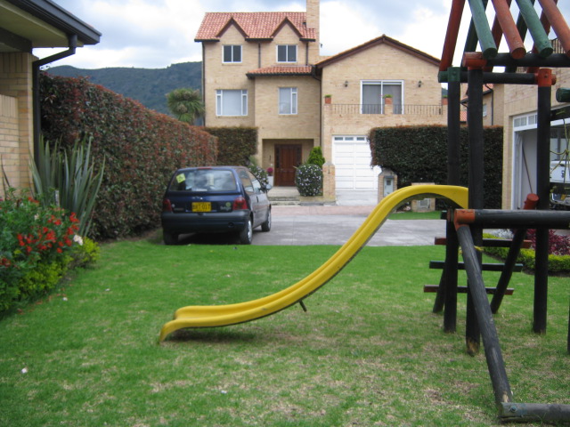 Excelente casa que consta de 4 alcobas con closet y baño privado en cada una, alcoba principal tiene vestier y tina, cuarto y baño del servicio, familyroom, cocina, patio de ropas, sala y comedor independiente, estudio, depósito bajo la escalera, baño social, terraza en extensión al familyroom, garaje cubierto motor eléctrico (control remoto), 3 chimeneas en sala, familyroom y altillo, altillo con baño, cuarto de maletas y terraza, hall de alcobas con dos muebles de lino. Acabados en madera y marmol. Excelente iluminación. Amplias zonas verdes con parque de juego y zona bbq. Garaje cubierto para 2 carros y por fuera para 4. Excelente seguridad.
